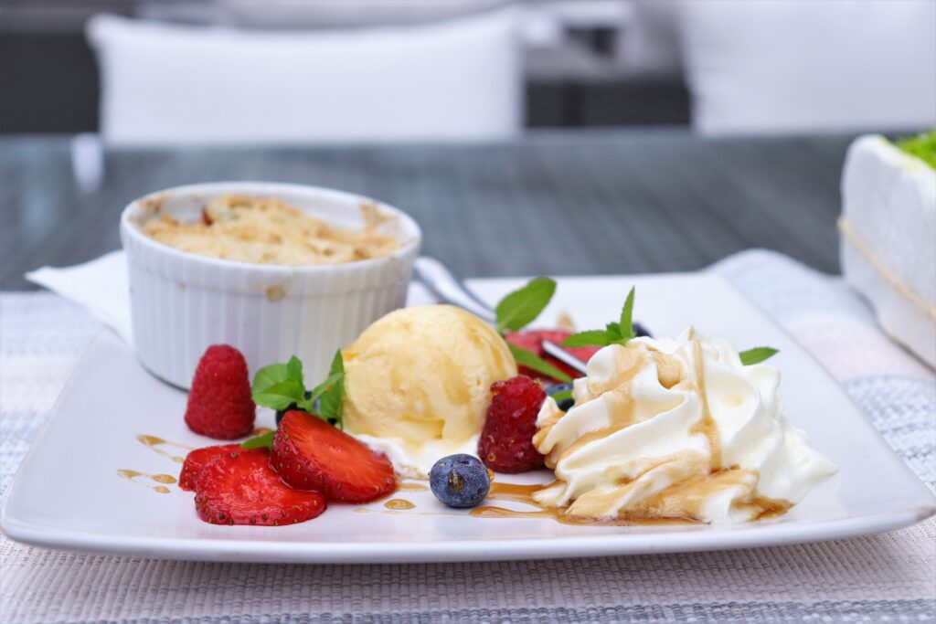 z bitą śmietaną i gałką lodów waniliowych